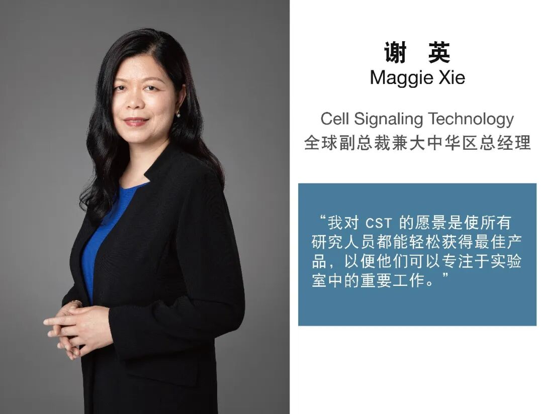在CST蓄势待发,进军转化赛道之际,CST中国也迎来了新的掌门人——谢英(Maggie Xie)女士。作为在医药行业有着二十多年经验的资深跨国高管,谢英女士在医药,器械以及生命科学行业有丰富的领导经验。她在医药行业工作逾十年,见证了药物或治疗过程的一丝进步可以续写一段人生。之后,她进入生命科学领域,先后在多家外企担任高级领导职位,服务于科学与转化研究。如今,她的职业生涯也进入了新的赛道。用她的话说,加入CST中国,从医药行业的“前店”到生物技术行业的“后厂”,希望从赋能科学发现开始,助力疾病研究,推动生物医药发展。